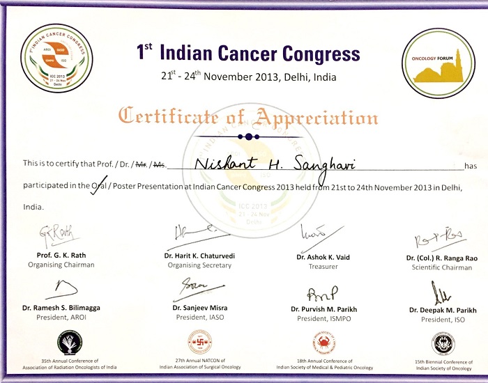 Dr. Sanghavi stays current with the latest advances through continuous education, attending international conferences, and participating in research that shapes the future of cancer surgery.